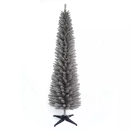 Extra-slim bodied Christmas tree with grey foliage, with two varieties of tip for an elegant effect. Flexible outer branches allow for shaping and arranging. This extra slim tree is ideal when space is limited.