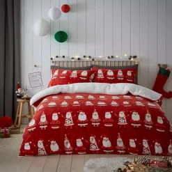 A happy and jolly Santa dances across this fun printed bedding set that has been produced on a super soft fleece bedding that has a plain white Sherpa fleece reverse to ensure you get the snuggliest nights sleep possible. Bedding doesn’t get much cosier than this. The duvet set includes one pillowcase with the single and two with the double.