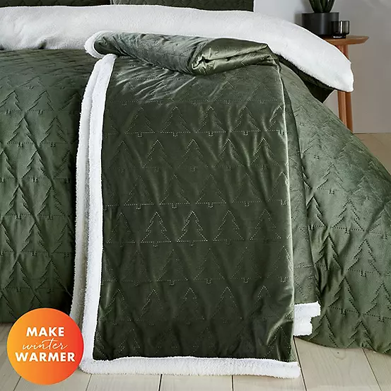 Transform your bedroom into a cosy Christmas wonderland, this throw features mini Christmas trees on a soft to touch green velvet base. The festive design adds a classic touch of holiday cheer to your bedroom decor, while the soft velvet material provides luxurious comfort.