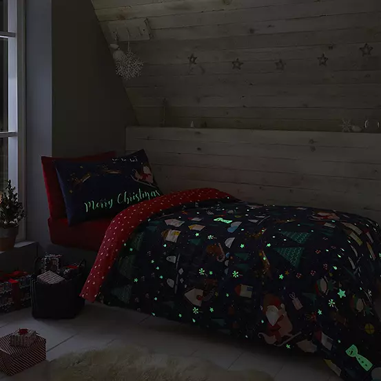 Add a sprinkle of festive cheer to your little one’s room with this fun printed design, perfect to set the Christmas Eve scene. The glow-in-the-dark snowflakes and snowman offer a soft glow to help them drift off to sleep ready for the big day.