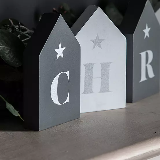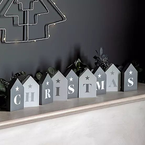Chic Living Set Of 9 Grey & White Christmas Letter Blocks