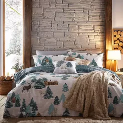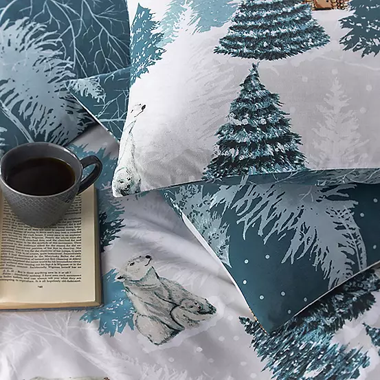 Transform your bedroom into a winter wonderland with the Arcticus Duvet Cover Set. Featuring a magical scene of cosy log cabins, snow topped pine trees and Arctic animals. A tonal blue design of wintry trees and foliage covers the reverse, giving you two looks in one!