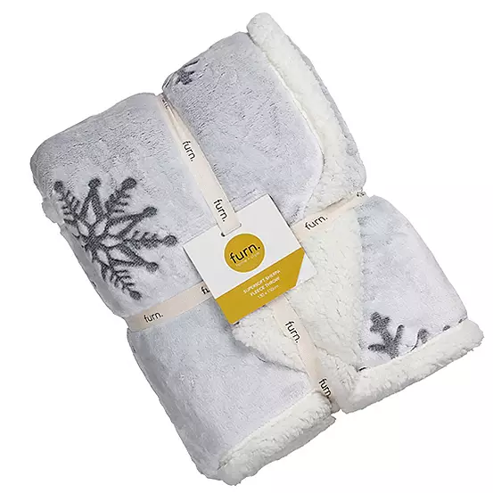 Stay warm this winter with the fabulously snuggly cut fleece patterned throw. It features large, detailed geometric snowflakes, set against a wintry silver background, cut with precision into the luxuriously soft textured fleece fabric. Surrounded by a chunky Sherpa heavyweight fleece fringe, along with an equally pleasant reverse, this throw is a seasonal essential.