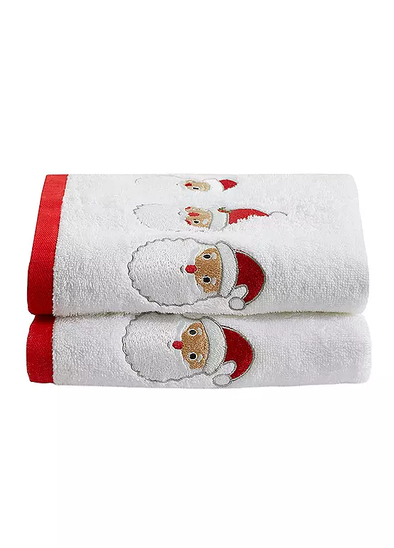 Made from soft, absorbent 100% natural cotton. These festively fab hand towels have an embroidered edge featuring jolly Father Christmas that will bring a touch of Christmas cheer to your home.