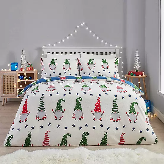 This little fellow knows the best place to spend Christmas – so he’s on his way home for some unforgettable festive fun. Printed on snuggly 100% brushed cotton fabric and featuring a contrasting reverse design, this bedding set is proof that when it comes to Christmas, there’s no place like gnome. The duvet set includes one pillowcase with the single and two with the double, king and super king.