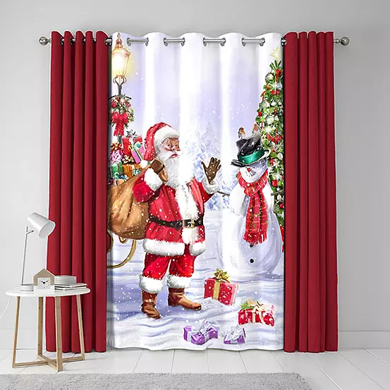 Add some wonder to your windows this winter season with this fabulous Christmas curtain panel from Fusion. Featuring our iconic Santa & Snowy print, these panels are made from easy care poly cotton and have an eyelet heading for ease of hanging and are fully lined to help keep light out and heat in. See the images for different ideas on how you can style these panels.