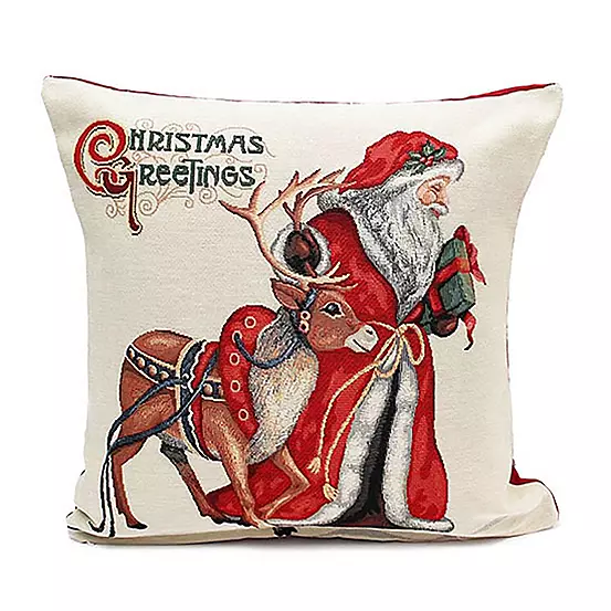 A delightful, vintage style father Christmas features on this tapestry cushion. It has crowd-pleasing appeal and will add a note of timeless tradition to your Christmas interior. Plain reverse and zip fastening.