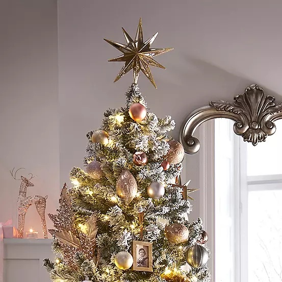 Give your tree a touch of glitz and glam with this stunning gold star topper with mirrored panels for extra shimmer. The glitter spiral fits easily to the top of the tree for a perfect festive finish.