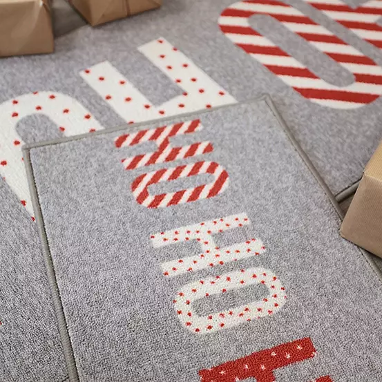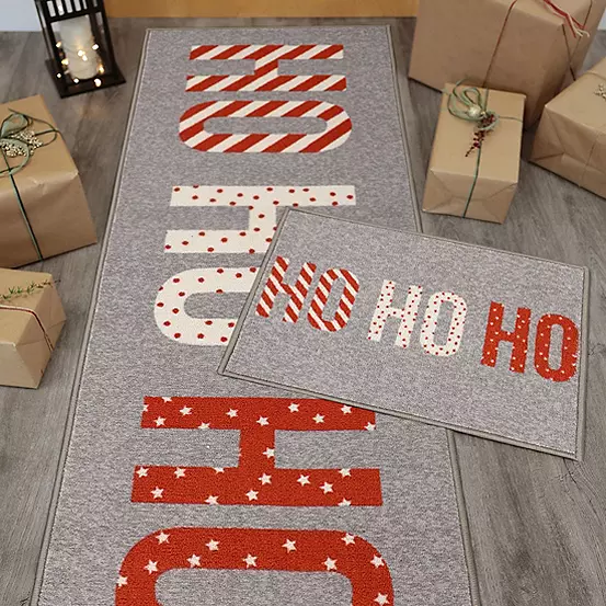 Fantastically festive design runner and doormat set, ideal for use in hallways and other high traffic areas. With a soft Polyester pile that is produced from recycled materials.