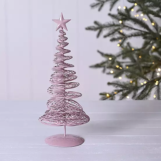 A pink wire Christmas tree by THE SEASONAL GIFT CO®. This modern Christmas tree is a welcome twist on the traditional for proud display at home. The pink metal decoration showcases an intricate ’halter smelter’ design. It is completed by a gloss finish. The tree is packaged in a brown box with 4c colour sticker.